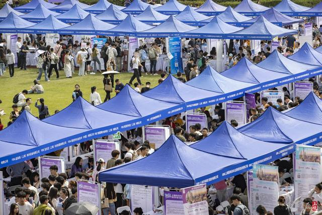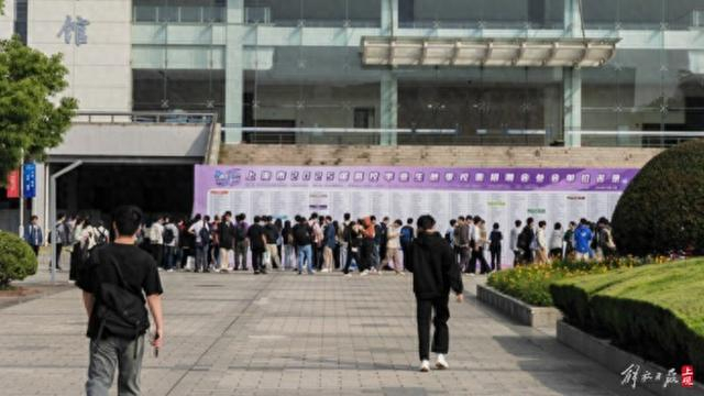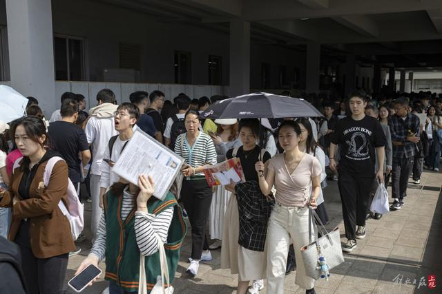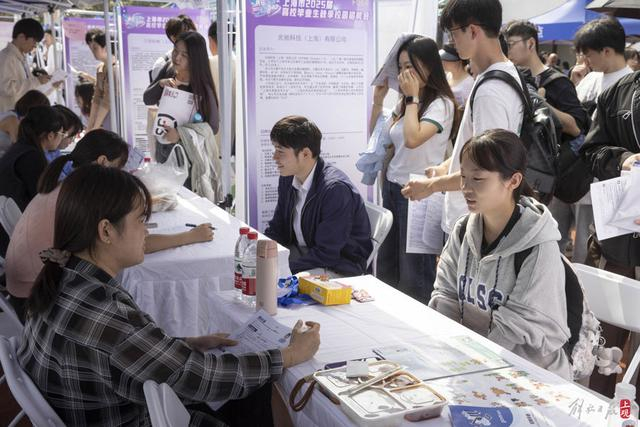 又到一年招聘季,今年秋招比去年来得早一点。10月12日,“勇往‘职’前,逐梦未来”2025届上海市高校毕业生秋季校园招聘会在上海大学宝山校区举行。早上9时30分,距离开场半小时,应聘学子在场馆外已有序排起200米左右长队。