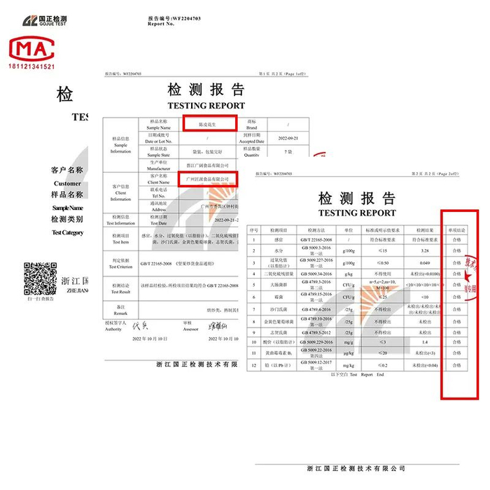 这款陈皮花生通过了国内权威机构的检测