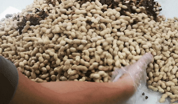 之后再将花生从料池里吊出,低温慢烘