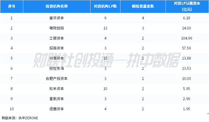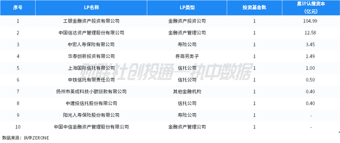 (二)金融机构LP出资规模TOP10