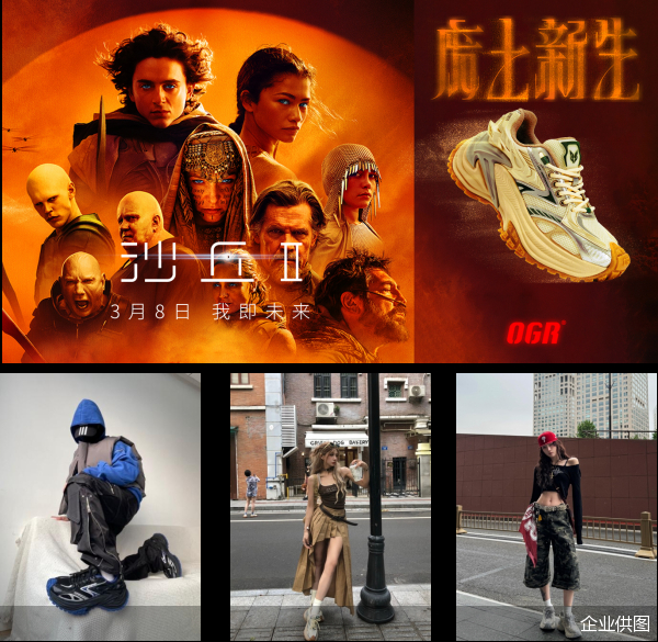 “响尾蛇”的强大声量亦成功促成了OGR与享誉全球的史诗级科幻大片《沙丘Ⅱ》的联名合作,推出了联名限定鞋履,共创出氛围感极强的线上线下购物体验,并在各大社交平台掀起了“废土风穿搭”的潮流风向。