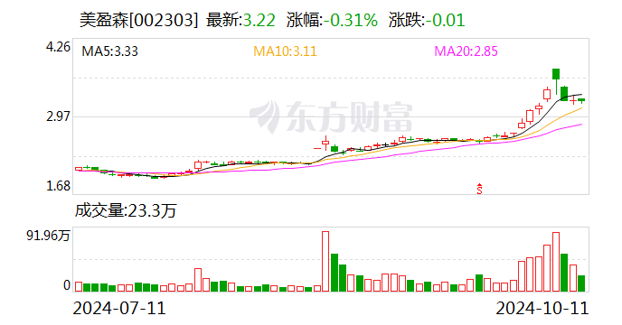 二级市场上,截至11日收盘,美盈森跌0.31%,报3.22元/股,总市值49.31亿元。