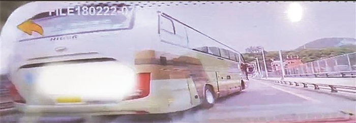 民警从举报者提供的行车记录仪视频中看到,这辆大巴车在行驶的过程中多次抢行、别车、采取紧急制动,影响举报者车辆正常通行。