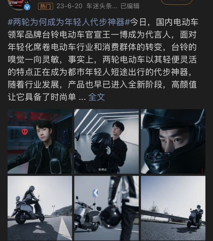 相比单纯的寄望于明星影响力,懂得借势明星和年轻人关注的话题再造热点,显然更具营销效率。典型如王一博代言台铃电动车,借势王一博影响力官宣的同时,垂类账号进一步引出话题#两轮为何成为年轻人代步神器#,并在文中提到台铃最新发布的超能S王一博同款,最终将话题推向了热搜榜第15位,也让台铃“长续航电动车”在消费者心中形成了更深的心智占位,引发深度种草。