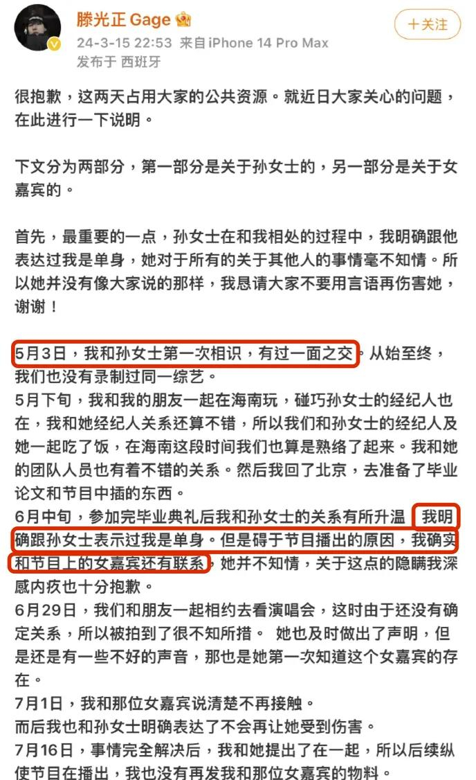 之后滕光正也现身回应,承认了自己跟孙怡、沛沛存在时间线重叠,但对自己劈腿的事实咬死不肯承认: