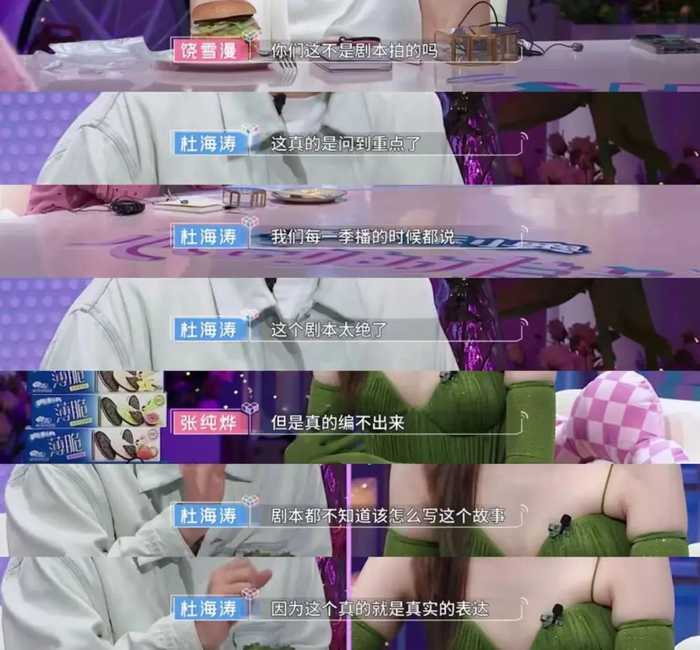 这季《心动的信号》里,几位观察室成员还特地回应了节目是否有剧本一事,说剧本也写不出来这样的糖点:
