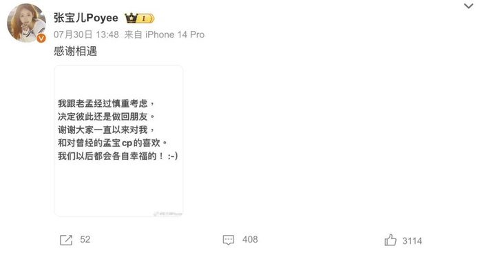 被辣评是合约情侣,时间一到就官宣分手。