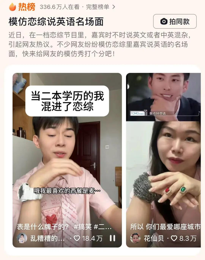 不断炮制各类高甜糖点,高学历家境好的俊男靓女们在节目里接连上演如同偶像剧般的互动,让人投射了太多关于恋爱的美好想象。