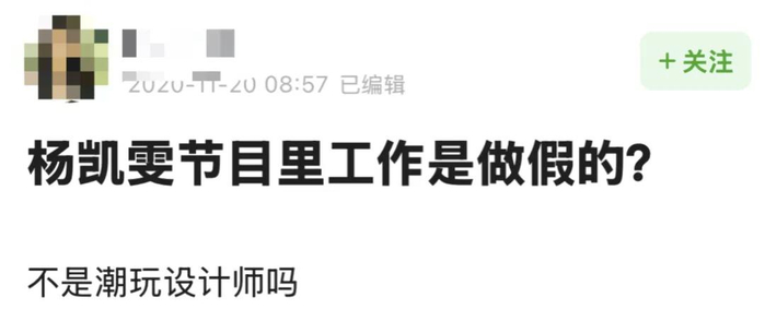 只是在这番回应后又有人爆料,说她从来没有上过班,所谓的潮玩设计师不过是节目安排的假工作: