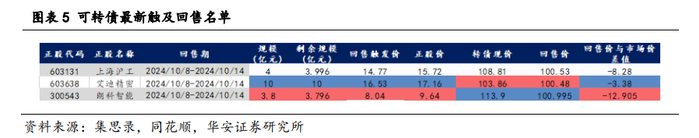 本文内容节选自华安证券研究所已发布报告:《转债回售全梳理及套利机会分析——转债周记(10月第2周)》(发布时间20241014),具体分析内容请详见报告。若因对报告的摘编等产生歧义,应以报告发布当日的完整内容为准。