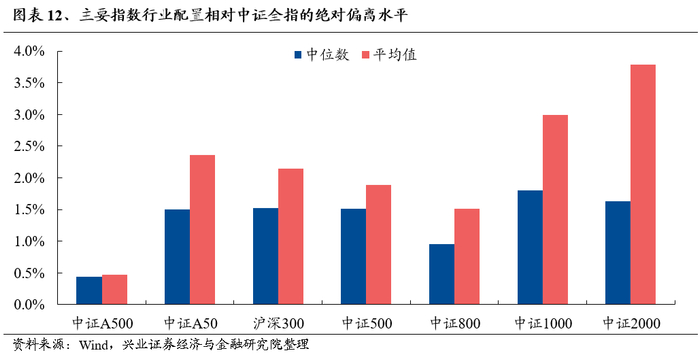 中证A500指数成分股在选样时,优先选取三级行业自由流通市值最大或在样本空间内排名前1%的证券作为指数样本,同时又要求各一级行业自由流通市值分布与样本进空间尽可能一致,令其不再单纯“以大为美”、“唯市值论”:根据中证指数公司的披露,中证A500指数行业分布较为均衡,最新一期样本覆盖全部35个中证二级行业及92个三级行业。