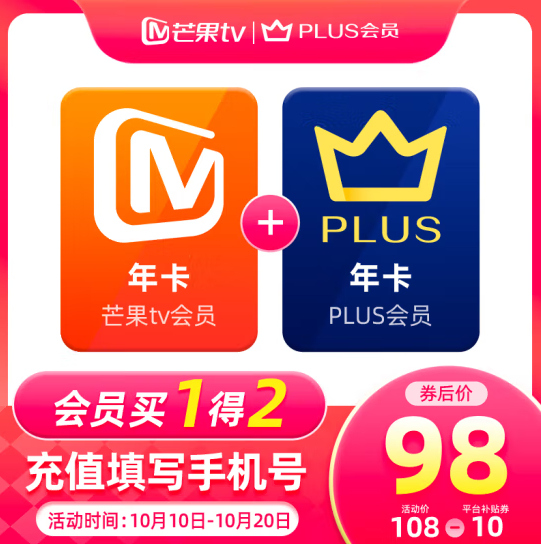 喜欢刷视频、追剧的消费者可以享福利,其中,充值腾讯视频VIP年卡10月14日晚8点京东价148元,送京东PLUS会员年卡;充值芒果TV会员年卡10月14日晚8点京东价98元,送京东PLUS会员年卡;支持电视端的爱奇艺白金VIP会员年卡10月14日晚8点领券到手价239元,赠喜马拉雅VIP半年卡。