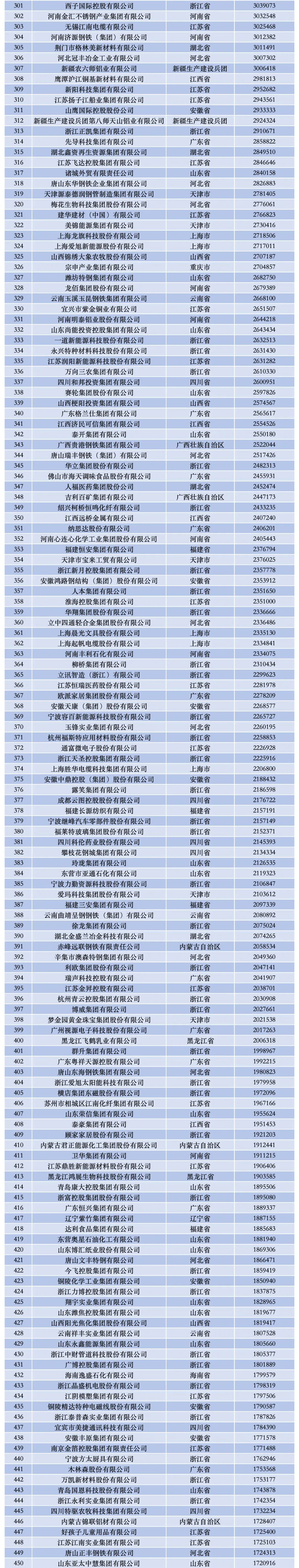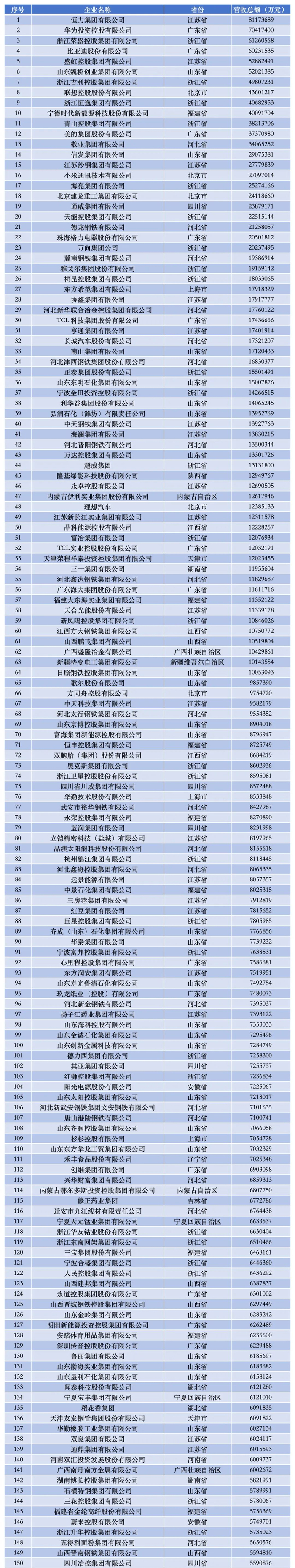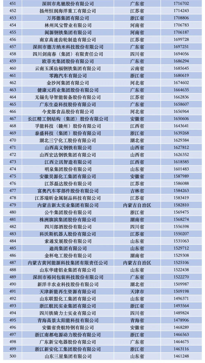 2024中国制造业民营企业500强榜单