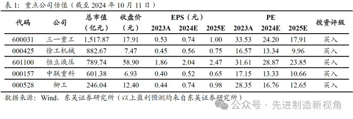 需求端:24年9月国内电装渗透率达11.6%,同增6.0pct,增长趋势不减。电动挖掘机市场竞争力初显,已于荷兰、挪威、印尼等地实现批量销售。工程机械作为生产力工具,经济敏感性较高,因此锂电池降本是提高竞争力的核心。中国具备全球最完善、最领先的锂电产业链,较大程度推动国内主机厂电动化进程。政策端:国家政策积极配合工程机械电动化趋势,上海、北京先后推出针对国二机械的报废补贴和新能源机械的更新补贴政策。我们认为,国内工程机械主机厂有望充分受益于国内锂电成本优势&电动化产品先发优势,于一带一路、东南亚等新兴市场实现突破后进军欧美高端市场,引领全球电动化浪潮。