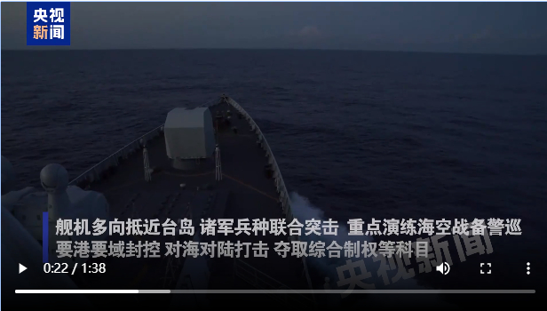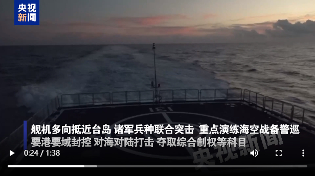 据央视新闻报道,这次演习,重点演练海空战备警巡、要港要域封控、对海对陆打击、夺取综合制权等科目,检验战区部队联合作战实战能力。战区联指中心下达行动指令后,舰机多向抵近台岛,诸军兵种联合突击,塑造多路合围之势。