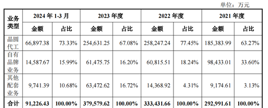 目前,新芯股份的主要收入来源于特色存储,占比为六至七成。按业务类型来看,新芯股份的主营业务收入来源于晶圆代工,占比达到7成,另外则是公司的自有品牌业务产品,占比在16%左右。