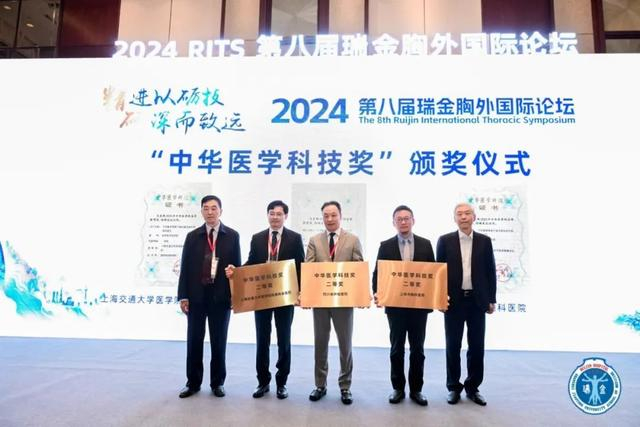 瑞金医院胸外科长期致力于食管肿瘤的微创治疗及综合治疗探索,牵头开展了食管癌免疫联合放化疗新辅助治疗(Palace系列)等多项临床研究,为国内食管癌规范化、个体化治疗提供了大量证据,以“可切除食管癌个体化综合治疗的模式优化”项目获得2023年度中华医学科技奖二等奖,并在此次瑞金胸外国际论坛开幕式上举行颁奖仪式。