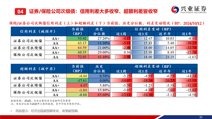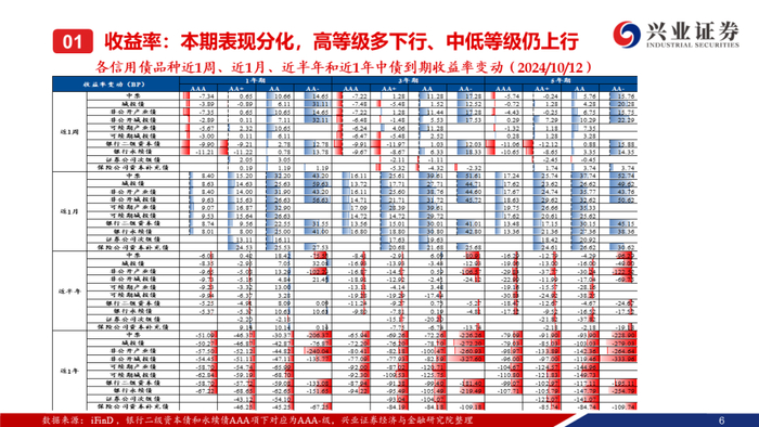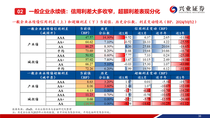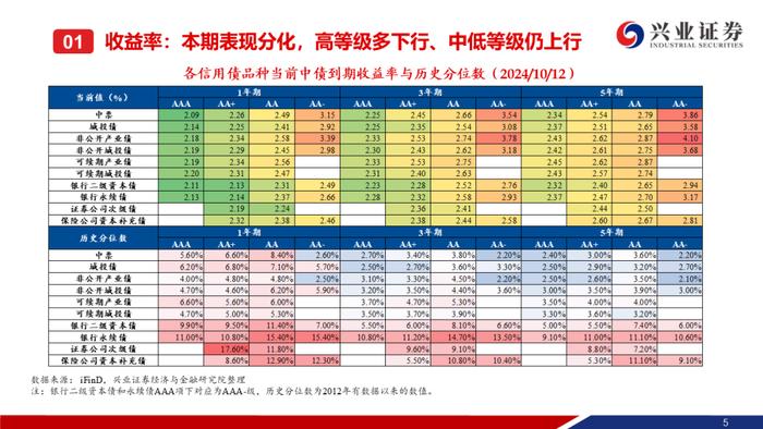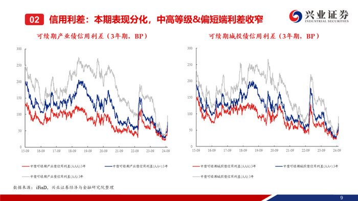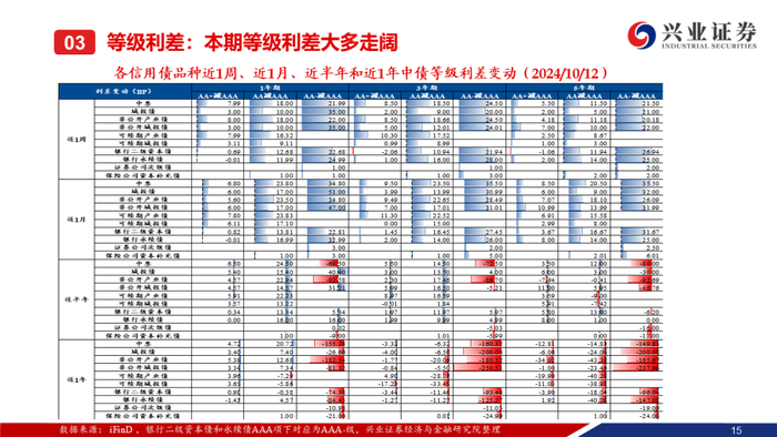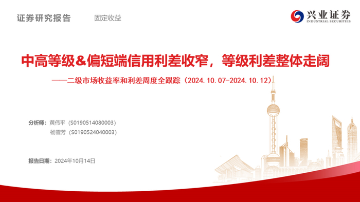 【兴证固收】中高等级&偏短端信用利差收窄,等级利差整体走阔——二级市场收益率和利差周度全跟踪(2024.10.7-10.12)