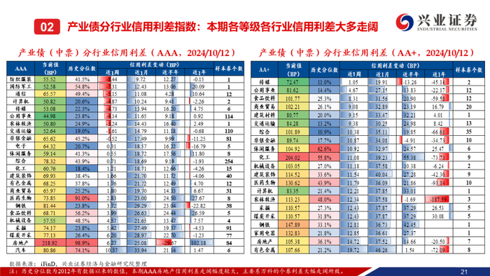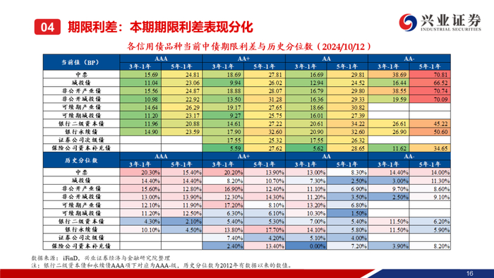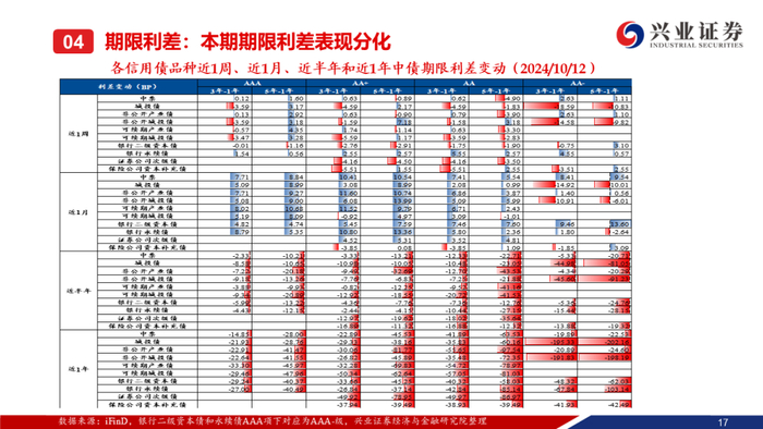 注:本期信用债收益率和各类利差的变动值为2024年10月12日减2024年9月30日的数值。