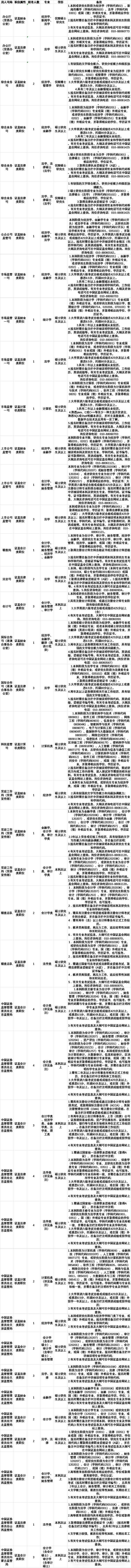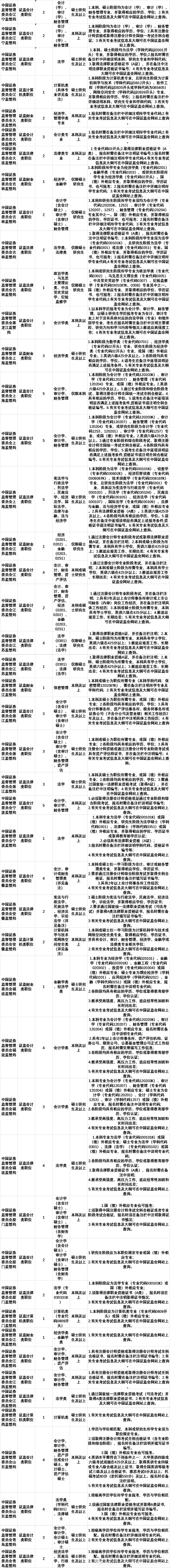 中国证监会拟招录331名会计、法律等专业监管人才(附招录计划表及考试大纲)