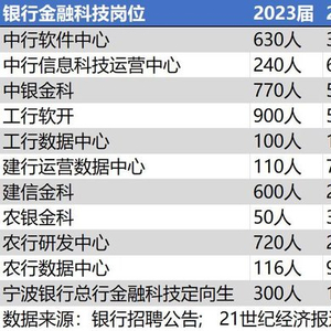 21世纪经济报道注意到,多家银行的金融科技岗位招聘数量已经连续两年减少。