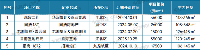 表:2024年9月重庆典型新房项目