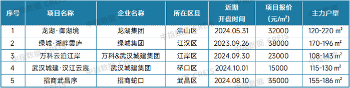 表:2024年9月武汉典型新房项目