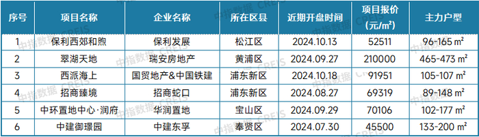 表:2024年9月上海典型新房项目