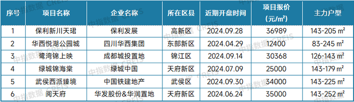 表:2024年9月成都典型新房项目