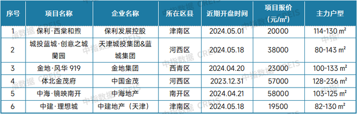 表:2024年9月天津典型新房项目