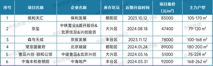 表:2024年9月北京典型新房项目