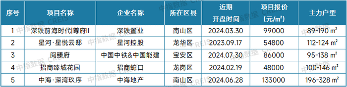 表:2024年9月深圳典型新房项目