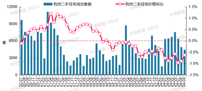 杭州:9月二手住宅成交量环比回落,低基数下同比增长,价格环比跌幅收窄