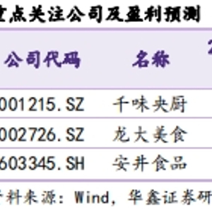 目前行业渗透率与发达国家仍存差距,行业集中度较低,尚未出现行业龙头企业。我们认为,具备规模、供应链、成本优势的龙头企业将在新行业环境下逐渐占领市场份额。重点推荐:安井食品、千味央厨、龙大美食。