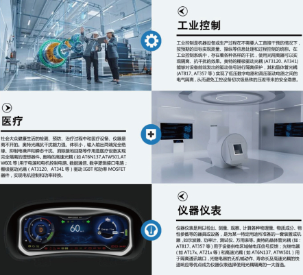 AOTE奥特半导体目前的光电耦合器产品包括:晶体管输出光耦、光电继电器、可控硅输出光耦、高速光耦、达林顿、IGBT驱动光耦等产品,产品广泛应用于智能家居、移动互联、智能仪表、智能汽车、医疗设备、工业控制、消费类及工业级产品领域等,为各行业提供完善服务。