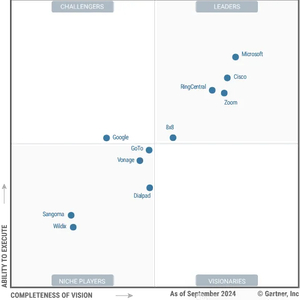 领导者拥有成熟的UCaaS产品组合。他们提供全面且集成的UCaaS解决方案,能够满足市场的全方位需求,具备为大型组织服务的成熟能力,并致力于三个或更多地理市场。他们为核心UCaaS领域的产品制定了迁移和演进计划,并利用其解决方案获取新客户、扩大地理覆盖范围以及在新功能领域进行创新。