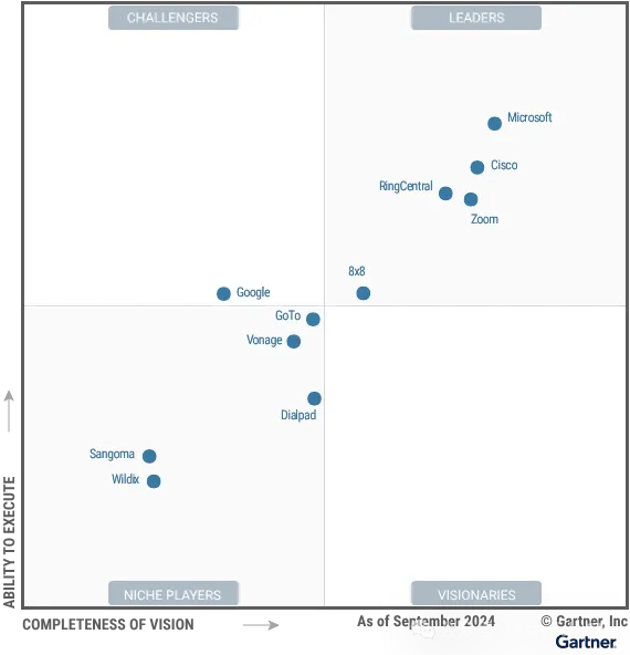 权威2024 Gartner-统一通信即服务(UCaaS)魔力象限发布,思科,谷歌,微软,ZOOM,Sangoma等上榜