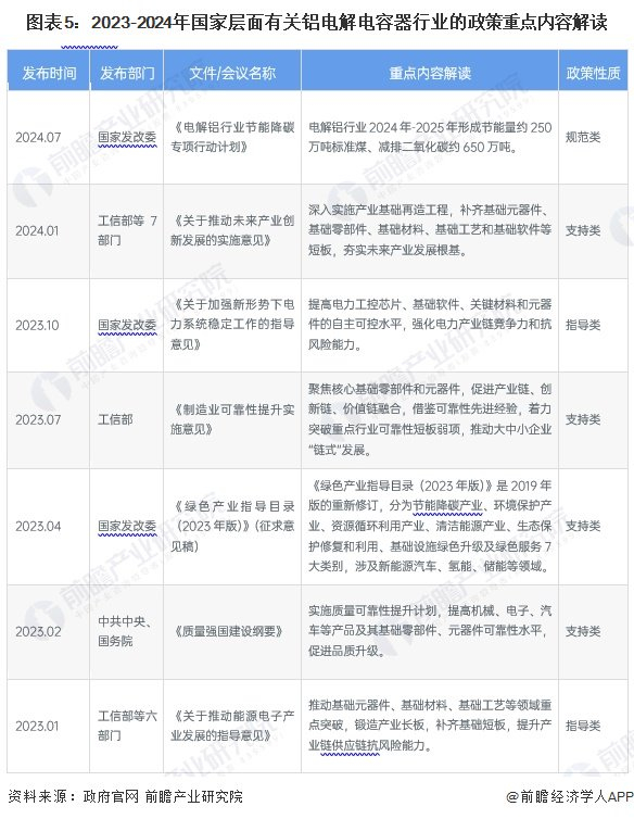 早在2011年,国家在《中国电子元件“十二五”规划》中就明确列出电子元件重点发展的产品和技术,有力推动电容器行业的发展。近年来,国家在电力电气、储能、新能源汽车等铝电解电容器主要应用领域的持续支持与鼓励,也极大地带动了铝电解电容器的需求增长: