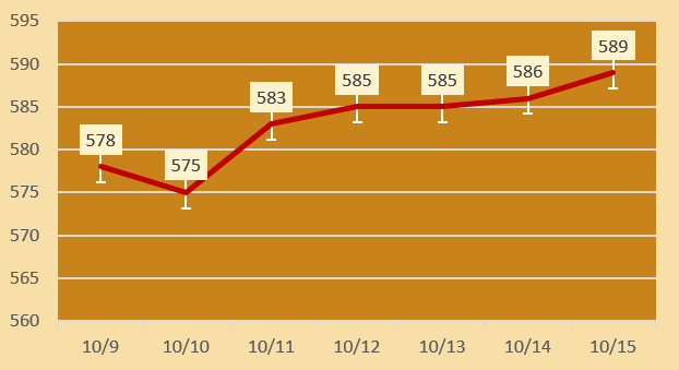 2024年10月15日,各品牌金店黄金零售价格维持在高价。据今日金价行情统计目前黄金首饰价格每克在615元至777元区间(工费另计),投资金条价格每克615元左右,白银价格7.2元/克。