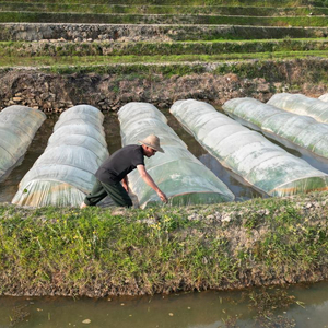 △云南省元阳县牛角寨镇果期村村民马有明在田里检查秧苗生长情况