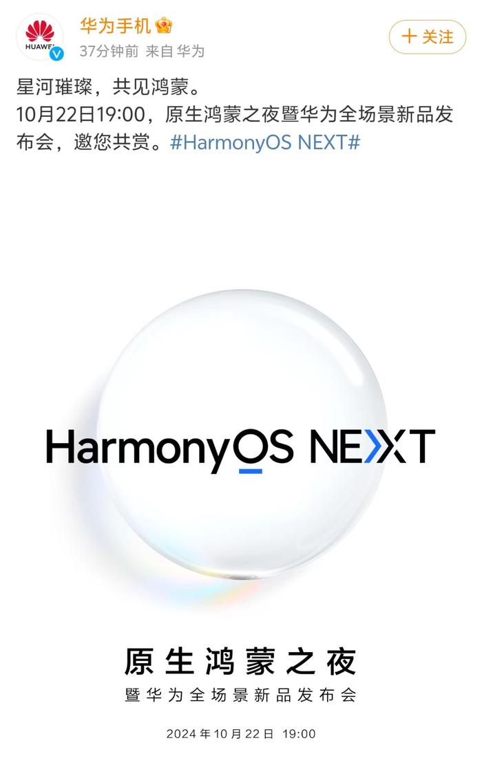 华为预告!将于10月22日举办原生鸿蒙之夜暨全场景新品发布会