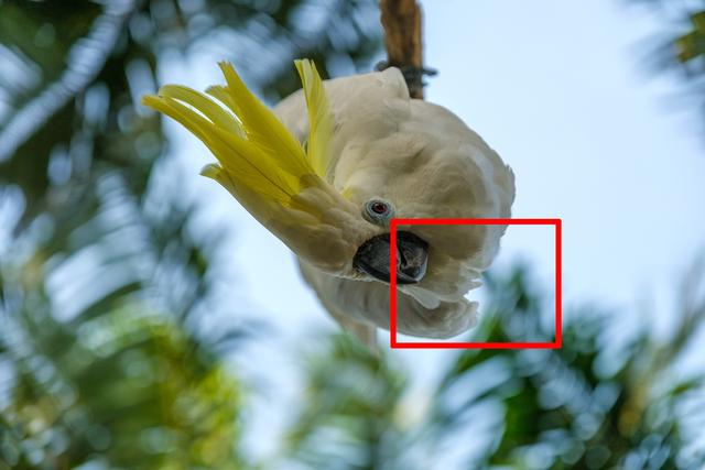F2.8逆光拍摄时,我们放大边缘的羽毛部分