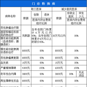 为保障一些高发重病在门诊治疗的高额医疗费用,国家设置了门诊特殊病和门诊慢性病待遇政策,对列入保障范围的病种,在门诊治疗的费用给予单独的保障待遇。我市按照省统一政策,目前对以下18个病种纳入门诊特殊病和门诊慢性病单独保障,保障待遇介绍如下。