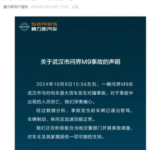 赛力斯汽车发布声明,回应武汉问界M9事故