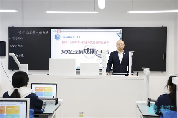 在深入一校智慧课堂环节中,学员们现场观看了教师嵇传亮的物理课《探究凸透镜成像的规律》、教师王晴的英语课《Unit3 My School Section A What is your school like?》、教师段立营的语文课《坐井观天》。参培学员对新区第一学校教师通过AI智能实验室巧妙融合物理学科核心素养与科学思维、数字化教育提升学生语言能力和小程序教学激发学生阅读兴趣等新颖教学方式,都产生浓厚兴趣。