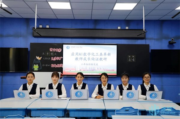 培训中,新区第一学校教师以现场语文学科中的AI教学为例,展开了评课、研讨并交流表示,AI技术不仅为教师提供了丰富多样的教学资源,还通过智能数据分析,帮助教师精准掌握学情,实现个性化教学,也提升了教师的素养、变革了课堂教学方式。
