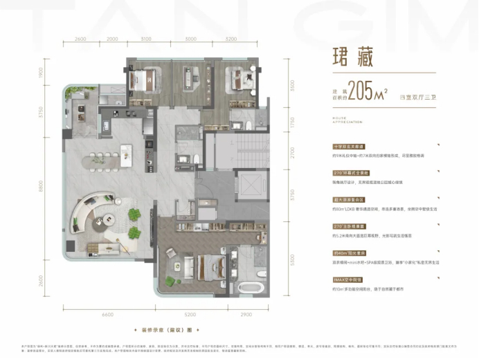 以建面约205㎡户型为例,是近三年新川供应面积最大的平层产品,也是项目最为依仗的拳头之作——