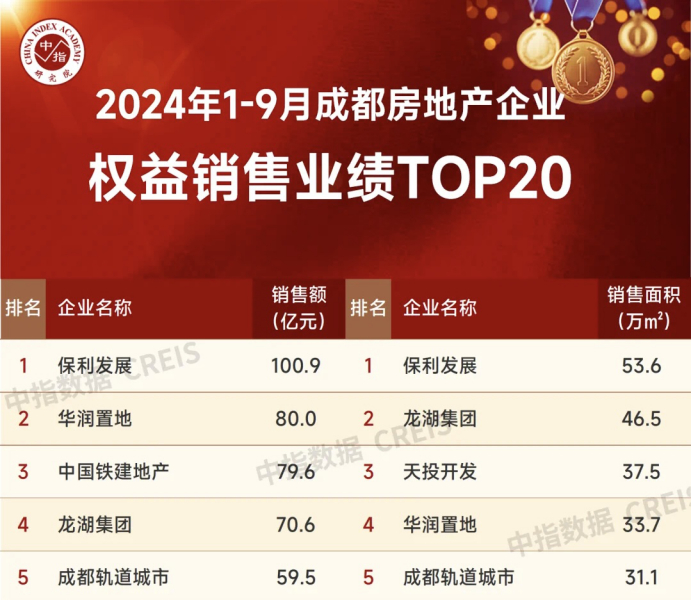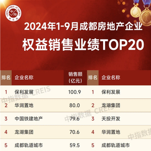 数据是有力的佐证。据中指研究院《2024年1-9月成都房地产权益销售业绩TOP 20》显示,保利四川前三季度以100.9亿元权益销售额和53.6万㎡销售面积,位列榜单双料第一。特别是国庆假期间,保利四川旗下项目在全城热销达15.3亿。