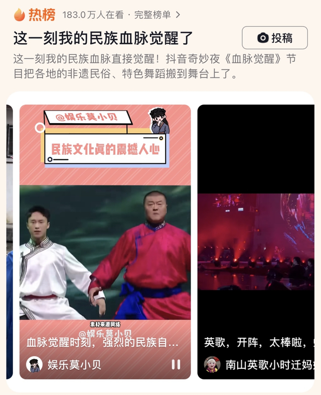 晚会结束后,姜铁红表演的节目登上抖音热榜