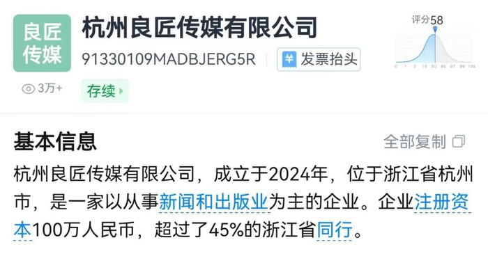其中,由其持股49%的杭州良匠传媒有限公司成立于2024年3月5日。潮新闻注意到,目前该公司已申请注册“听泉鉴宝”“听泉严选”“听泉甄选”“听泉优选”等多个商标,国际分类涉及广告销售、网站服务、珠宝钟表等,当前多个商标状态均为等待实质审查。